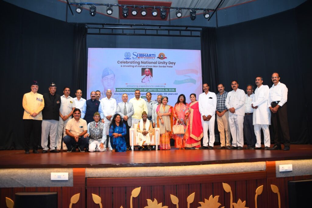 Akhand Bharat Diwas and Sardar Patel Jayanti celebrated at Subharti University, in the presence of 101-year-old Azad Hind Fauj soldier Lieutenant R. Madhavan Pillai.